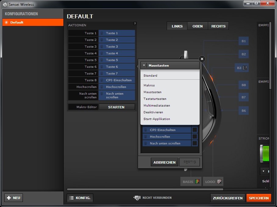 Beleuchtung und Tastenbelegung der Sensei Wireless ist beliebig anpassbar.