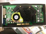 WinFast TwinTurbo-II, so heißt das bekannte Kühlsystem von Leadtek, welches bereits auf dem ersten Nvidia Flaggschiff, dem NV30, zum Einsatz kam (Bildquelle: Akiba Japan). Rein äußerlich hat man nichts am Aussehn der Kühlkonstruktion verändert bzw. verbessert. Wie es im Inneren aussieht, lässt sich nicht genau sagen, jedoch kann man davon ausgehen, dass sich auch hier nichts verändert hat, sonst würde man den Kühler wohl TwinTurbo-III nennen. Bei TwinTurbo handelt es sich um eine Entwicklung, die durch so genannte Tunnel einen optimalen Luftstrom und dadurch eine perfekte Kühlung ermöglicht. Zwar ist kein genauer Wert der Lautstärke bekannt, doch gehen wir hier von ebenfalls etwa 40 dB aus, da wir TwinTurbo-II bereits auf einer FX 5800 erleben durften und in etwa einschätzen können wie laut sie im Vergleich zu anderen Karten ist...