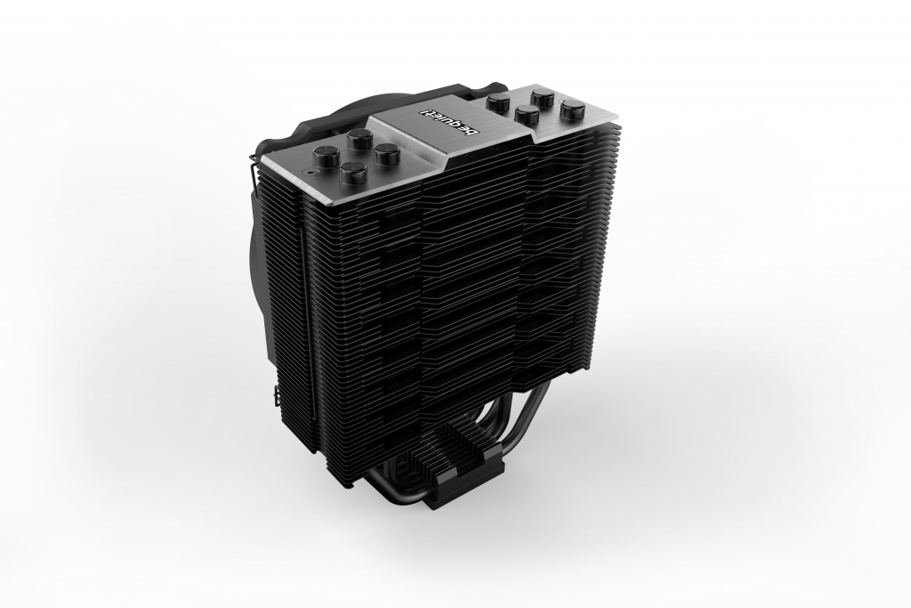 Kühllamellen und Heatpipes des Dark Rock Slim sind mit einer schwarzen, keramikpartikelhaltigen Beschichtung versehen. Diese spezielle Oberflächenlackierung verbessert die Wärmeableitung des Kühlers und sorgt für ein modernes Aussehen. Vier Hochleistungs-Heatpipes aus Kupfer transportieren die Wärme von der Bodenplatte zum Kühlkörper. Die Oberfläche der Lamellen ist mit kleinen, punktförmigen Vertiefungen versehen, um die verfügbare Kühlfläche zu vergrößern, während die wellenförmige Kontur des Kühlkörpers für einen idealen Luftstrom durch die Lamellen sorgt. Beim Lüfter an der Vorderseite handelt es sich um den Silent Wings 3 120 mm PWM-Lüfter mit luftstromoptimierten Lüfterblättern, einem 6-Pol-Motor, trichterförmigem Lufteinlass und einem Fluid-Dynamic-Lager (FDB). Um den Transfer von Vibrationen des Lüfters an den Kühler zu unterbinden und damit einen leisen Betrieb zu garantieren, ist die Halterung des Lüfters mit Gummistreifen entkoppelt. Ein zweiter, optionaler Lüfter kann bei Bedarf mithilfe der beigelegten Halteklammern auf der anderen Seite des Kühlkörpers angebracht werden.